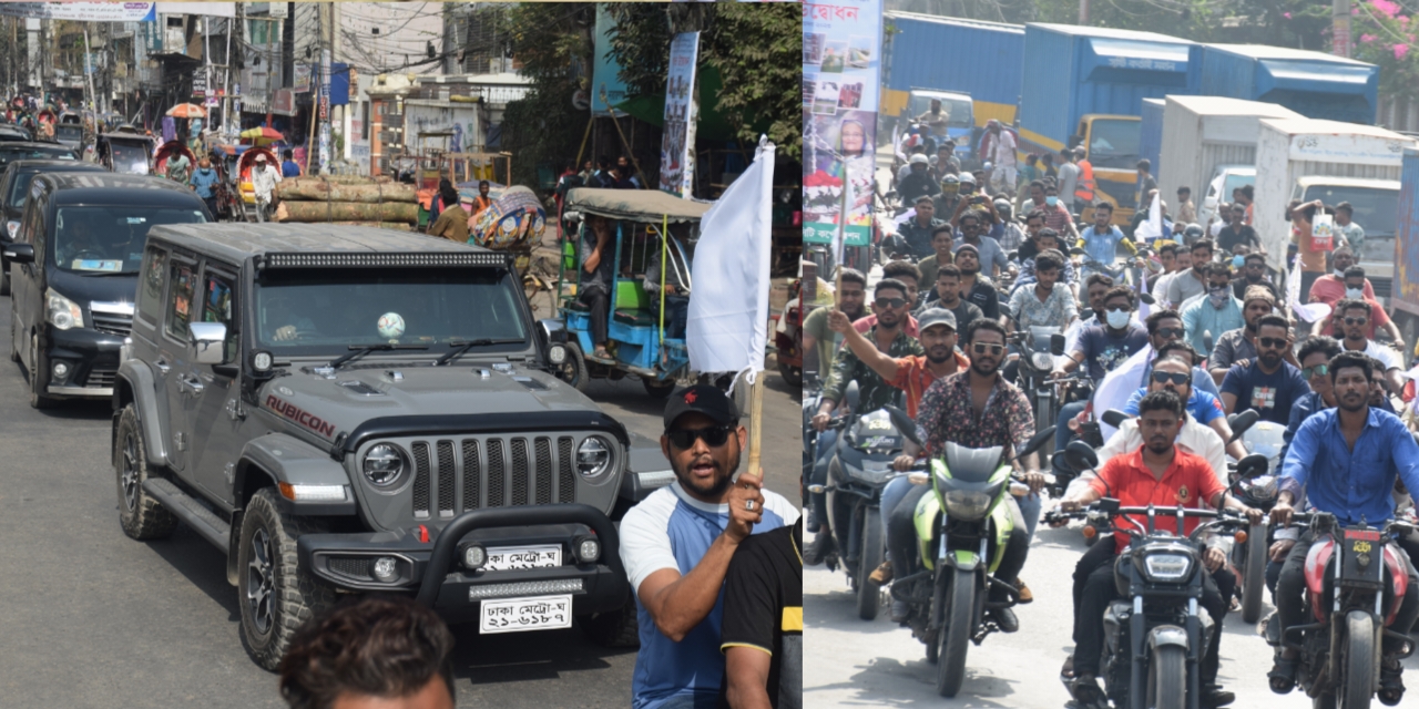 বিএনপির ৫ম দফা অবরোধের ১ম দিনেও অগ্নিসন্ত্রাস, জ্বালাও-পোড়াও, সহিংসতার প্রতিবাদে রাজপথে ছিলো নারায়ণগঞ্জ-৫ আসনের প্রয়াত সংসদ সদস্য নাসিম ওসমান পুত্র আজমেরী ওসমান। অন্যান্য দিনের ন্যায় এদিনও বিশাল হোন্ডা বাহিনী ও গাড়ি বহর নিয়ে শান্তি মিছিল করেন নারায়ণগঞ্জের এ যুব নেতা।