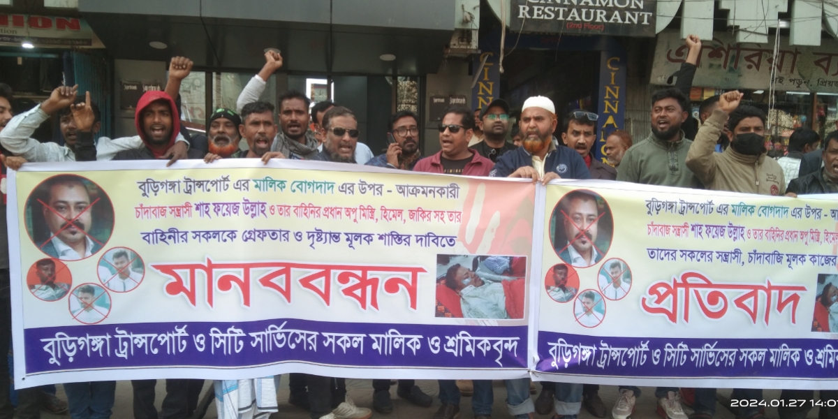 একইসাথে এই সন্ত্রাসী হামলার প্রতিবাদে ফয়েজ ও তার বাহিনীর সকল সন্ত্রাসীকে গ্রেফতার করে দৃষ্টান্তমূলক শাস্তির দাবিতে শনিবার (২৭ জানুয়ারি) দুপুরে নারায়ণগঞ্জ প্রেসক্লাবের সামনে মানববন্ধন করেছে বুড়িগঙ্গা ট্রান্সপোর্ট ও সিটি সার্ভিসের সকল মালিক ও শ্রমিকবৃন্দ। এসময় ফয়েজ ও তার বাহিনীকে অনতিবিলম্বে গ্রেফতার করে আইনের আওতায় আনার দাবি জানান তারা। মানববন্ধন শেষে নগরীতে বিক্ষোভ মিছিল করে তারা।