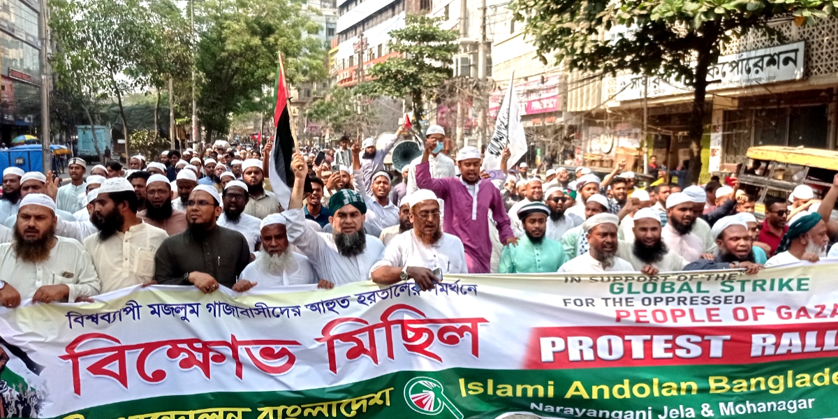 বিশ্বব্যাপী মজলুম গাজাবাসীদের আহুত হরতালের প্রতি পূর্ণ সমর্থন জানিয়ে ইসলামী আন্দোলন বাংলাদেশ নারায়ণগঞ্জ জেলা ও মহানগর বিক্ষোভ মিছিল করেছে। সোমাবার (৭ এপ্রিল) বাদ জোহর নারায়ণগঞ্জ প্রেস ক্লাব থেকে তারা মিছিলটি বের করে।
