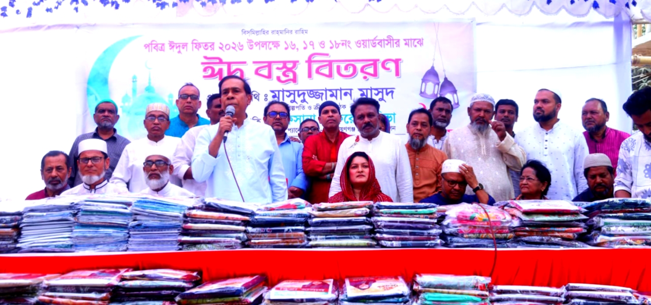 পবিত্র ঈদুল ফিতর উপলক্ষে ১৬, ১৭ ও ১৮ নম্বর ওয়ার্ডের অসহায় ও দুস্থ মানুষের মাঝে ১৫০০ পরিবারের মধ্যে ঈদবস্ত্র বিতরণ করা হয়েছে।