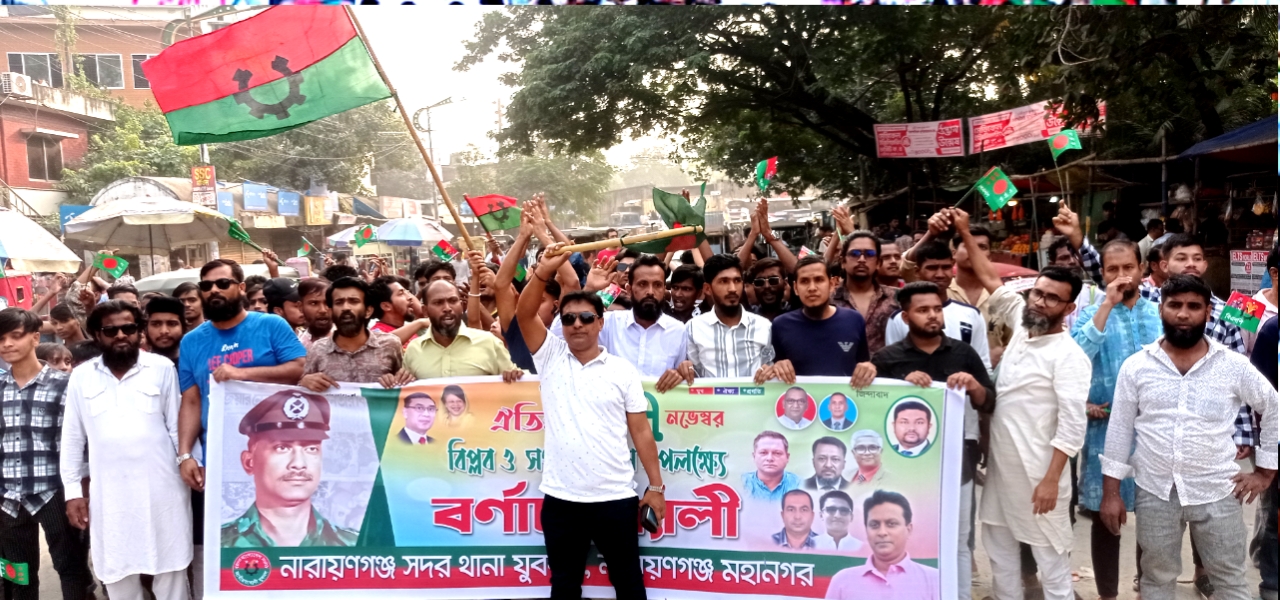 ঐতিহাসিক ৭ নভেম্বর জাতীয় বিপ্লব ও সংহতি দিবস উপলক্ষে জাকির হোসেন সেন্টুর নেতৃত্বে বিশাল মিছিল যোগদান।