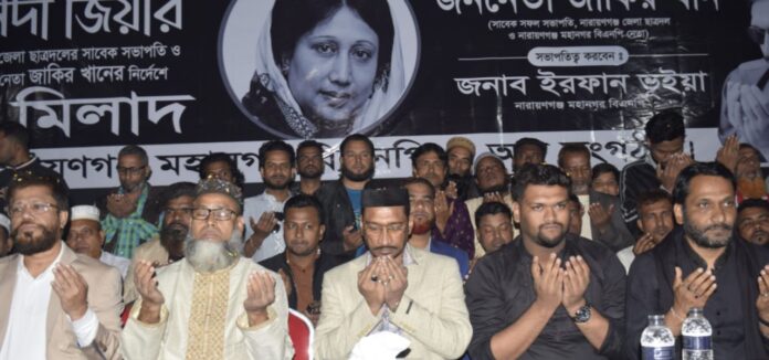 রবিবার (৮ ফেব্রুয়ারী) রাতে নারায়ণগঞ্জ মহানগর বিএনপি ও অঙ্গ সংগঠনের আয়োজনে এ মিলাদ মাহফিলে প্রধান অতিথি হিসেবে উপস্থিত ছিলেন, জেলা ছাত্রদলের সাবেক সফল সভাপতি ও মহানগর বিএনপি নেতা জাকির খান।