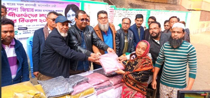 সাবেক সফল প্রধানমন্ত্রী ও আপোষহীন নেত্রী বিএনপি চেয়ারপার্সন বেগম খালেদা জিয়ার রুহের মাগফিরাত কামনায় শীতার্তদের মাঝে নারায়ণগঞ্জ সিটি কর্পোরেশনের ১২ নং ওয়ার্ডের সাবেক কাউন্সিলর শওকত হাসেম শকুর শীতবস্ত্র বিতরণ করেছে।