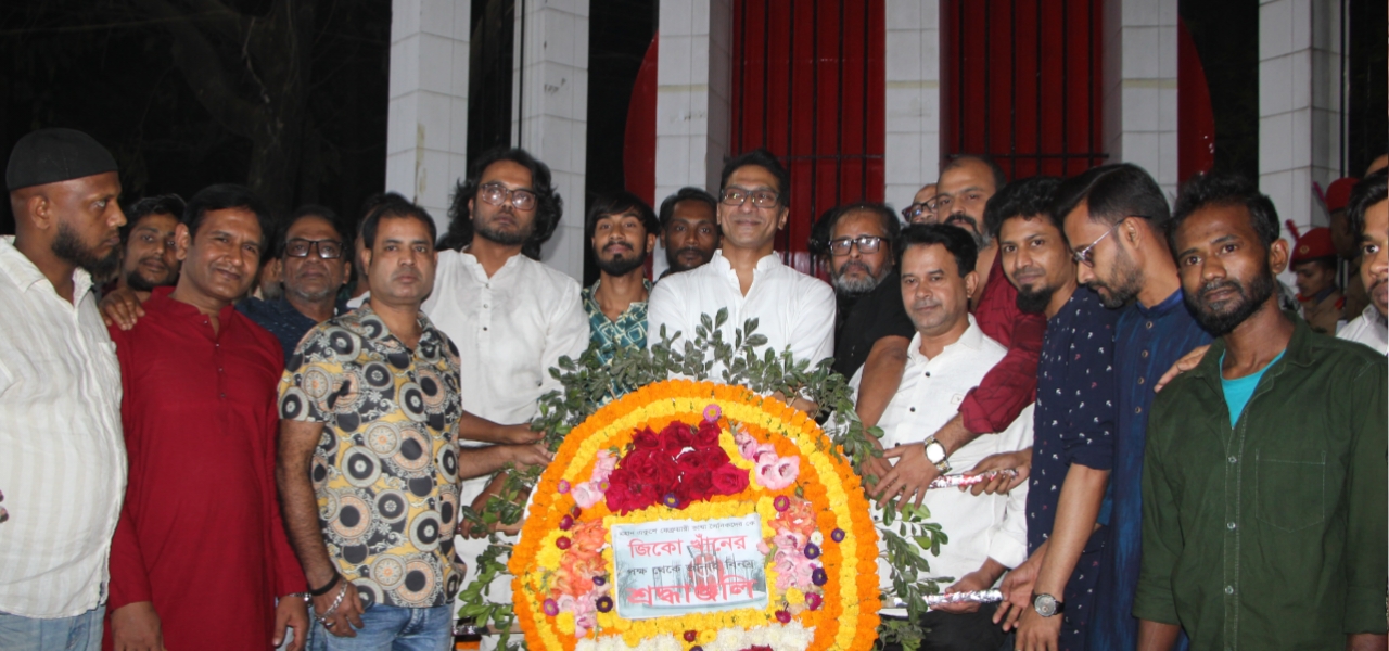 চাষাঢ়া কেন্দ্রীয় শহীদ মিনারে সদর থানা জাসাসের সভাপতি জিকো খানের শ্রদ্ধা নিবেদন
