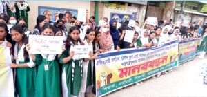 রোববার (২২ জুন) বিকাল সাড়ে ৪টায় স্কুলের সামনে আয়োজিত মানববন্ধনে অংশ নেন শিক্ষক, বর্তমান ও প্রাক্তন শিক্ষার্থী, অভিভাবকসহ স্থানীয় গণ্যমান্য ব্যক্তিরা। মানববন্ধন শেষে মিছিল সহকারে নারায়ণগঞ্জ প্রেস ক্লাবের সামনে এসে বিক্ষোভ করেন তারা।