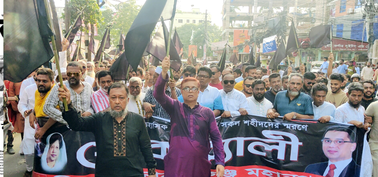 জুলাই-আগষ্ট শহীদদের স্মরণে না:গঞ্জ মহানগর বিএনপি’র মৌন মিছিল