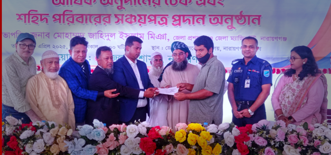 জুলাই গণঅভ্যুত্থানে আহত ‘সি’ ক্যাটাগরির জুলাই যোদ্ধাদের আর্থিক অনুদানের চেক এবং শহীদ পরিবারের সঞ্চয়পত্র প্রদান অনুষ্ঠান অনুষ্ঠিত হয়েছে।