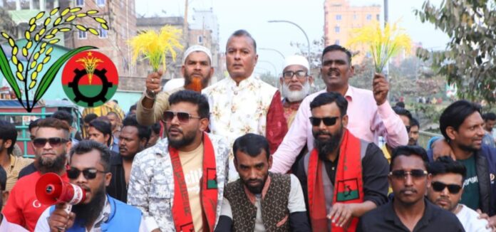 ধানের শীষ প্রতীকে ভোট চেয়ে এড.আবুল কালামের পক্ষে হাসান আহমেদের লিফলেট বিতরণ ও গণসংযোগ