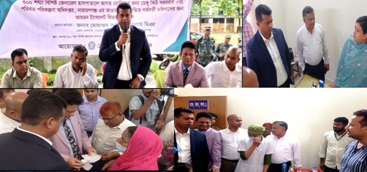 নারায়ণগঞ্জ জেলা প্রশাসনের উদ্যোগে এবং জেলা পরিষদের অর্থায়নে ৩০০ শয্যাবিশিষ্ট হাসপাতালে রোগীদের জন্য ডেঙ্গু কিট এবং পরিবার পরিকল্পনা বিভাগের আওতাধীন গর্ভবতী নারীদের জন্য আয়রন ট্যাবলেট বিতরণ করা হয়েছে।