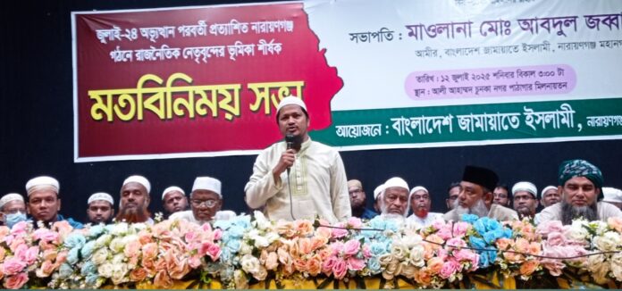 জুলাই- ২৪ অভ্যুত্থান পরবর্তী প্রত্যাশিত নারায়ণগঞ্জ গঠনে রাজনৈতিক নেতৃবৃন্দের সাথে মহানগরী জামায়াতে ইসলামীর ভূমিকা শীর্ষক মতবিনিময় সভা অনুষ্ঠিত হয়েছে। শনিবার (১২ জুলাই) বিকালে উক্ত মতবিনিময় সভায় সভাপতিত্ব করেন নারায়ণগঞ্জ মহানগরী জামায়াতে ইসলামীর আমীর মাওলানা আবদুল জব্বার।