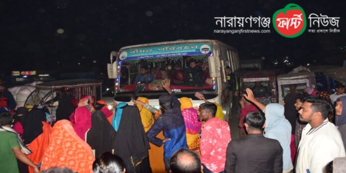 বকেয়া বেতনের দাবিতে নারায়ণগঞ্জে সড়ক অবরোধ