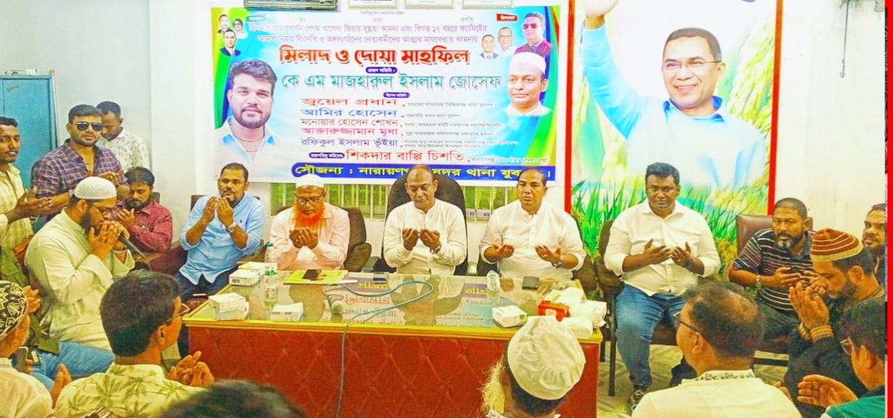 বিএনপির চেয়ারপার্সন বেগম খালেদা জিয়ার সুস্থ্যতা ও বিগত ১৬ বছরে ফ্যাসিষ্টের আমলে নিহত নেতাকর্মীদের আত্মার মাগফেরাত কামনায় মিলাদ ও দোয়া মাহফিল অনুষ্ঠিত হয়েছে।