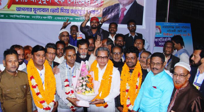 নারায়ণগঞ্জ সম্মিলিত নাট্যকর্মী জোটের নির্বাচনে ১৫৮ ভোট পেয়ে সভাপতি হিসেবে জয়ী হয়েছেন মাসুমুল হক সোহেল ও সাধারণ সম্পাদক হিসেবে ১৫৮ ভোট পেয়ে নির্বাচিত হয়েছেন কবির প্রধান।