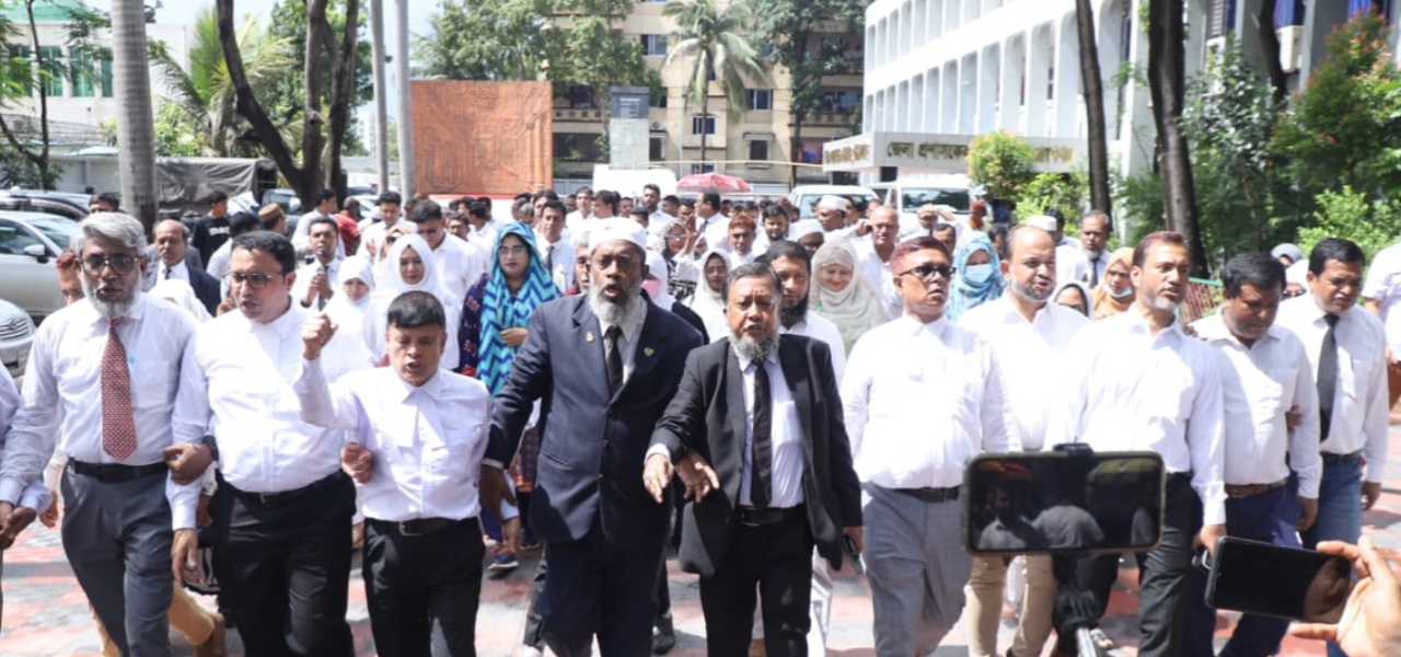 এ সময় বিএনপিপন্থী আইনজীবীরা স্লোগানে স্লোগানে মুখর করে তোলেন পুরো আদালত পাড়া।
