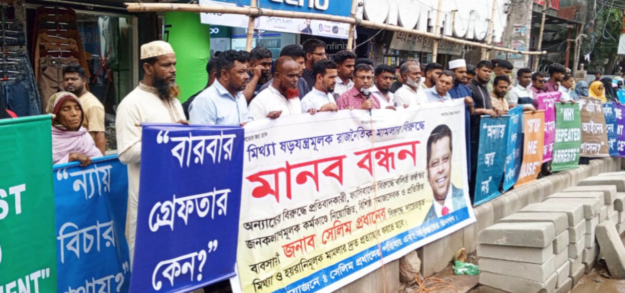 ব্যবসায়ী ও সমাজসেবক সেলিম প্রধানের বিরুদ্ধে মিথ্যা মামলা প্রত্যাহার, হয়রানী ও অবিচার বন্ধে প্রধানমন্ত্রীর হস্তক্ষেপ চেয়ে পরিবার ও রুপগঞ্জ বাসীর পক্ষ থেকে মানববন্ধন কর্মসূচী পালন করা হয়েছে।