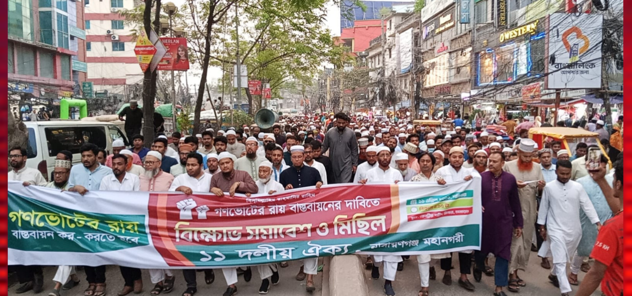 কেন্দ্রীয় কর্মসূচীর অংশ হিসেবে গণভোটের রায় দ্রুত বাস্তবায়নের দাবিতে উত্তাল হয়ে উঠেছে নারায়ণগঞ্জ। শনিবার (১১ এপ্রিল) বিকালে শহরের চাষাড়া সংলগ্ন কেন্দ্রীয় শহীদ মিনারে ১১ দলীয় ঐক্য নারায়ণগঞ্জ মহানগরীর উদ্যোগে এক বিশাল বিক্ষোভ সমাবেশ ও মিছিল অনুষ্ঠিত হয়।