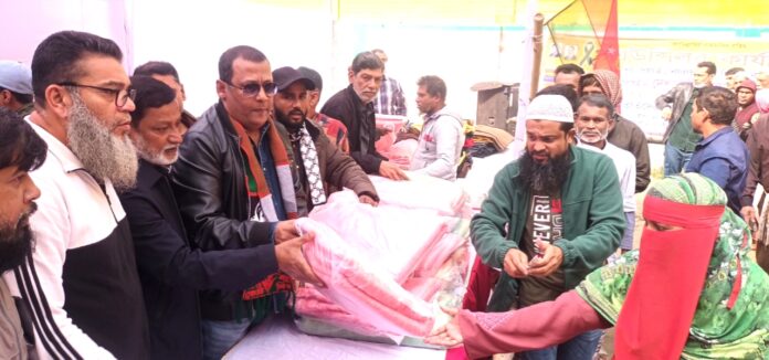 দোয়া মাহফিল শেষে শীতার্ত ও দুস্থ মানুষের মাঝে কম্বল বিতরণ করা হয়।
